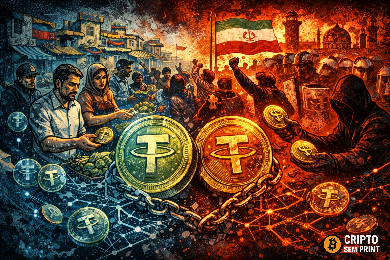 No cenário observado no início de 2026, a dualidade das stablecoins se tornou evidente em países sob pressão econômica. Enquanto cidadãos da Venezuela e Irã usam o Tether (USDT) como proteção contra inflação e instabilidade, entidades sancionadas também recorrem ao ativo para contornar restrições internacionais.